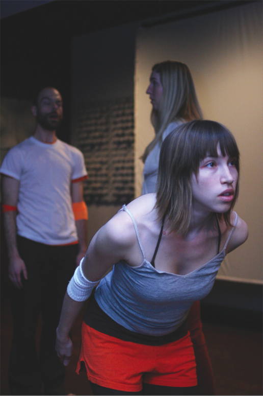 Jeff Harms, Erica Mott and Lily Emerson in Stridulate. Photo by Carl Wiedemann.